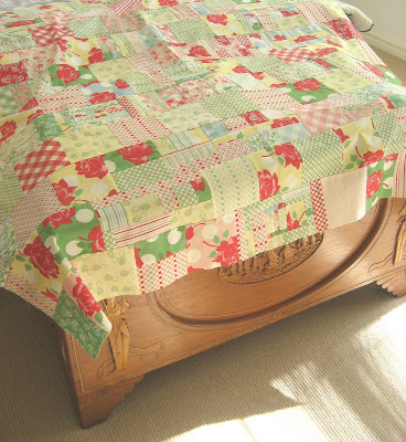 At exactly this time last year I was furiously sewing a quilt in anticipation of the arrival of the littlest one and I am pleased to say I finished it just in time. Since then I have wanted to make a similar quilt. I found some very pretty fabric and, because I so enjoyed this form of quilting - I call it 'slice and dice', or 'no mistakes' quilting - I decided to make another